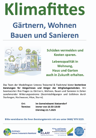 - 28.04.2025 - Kostenlose Beratung: Klimafittes Gärtnern, Wohnen, Bauen und Sanieren