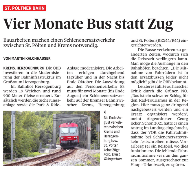 - Vier Monate Bus statt Zug (NÖN) - 01.07.