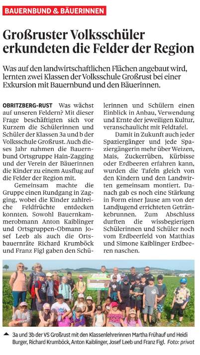 - Großruster Volksschüler erkunden die Felder der Region (NÖN) - 01.07.