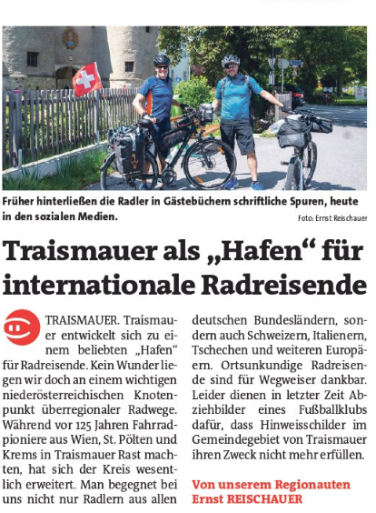 - Traismauer als Hafen für internationale Radreisende (Bezirksblatt) - 28.08.
