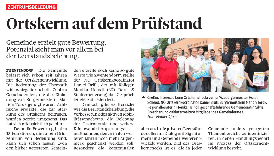 - Zwentendorf: Ortskern auf dem Prüfstand (NÖN) - 30.07.