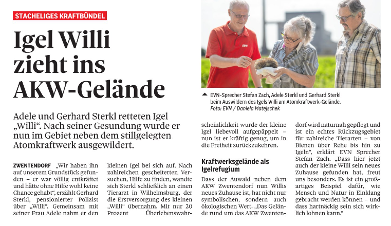 - Igel Willi zieht ins AKW Gelände (NÖN) - 01.07.