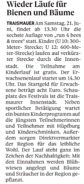 - Wieder Läufe für die Bienen und Bäume (NÖN) - 17.06.