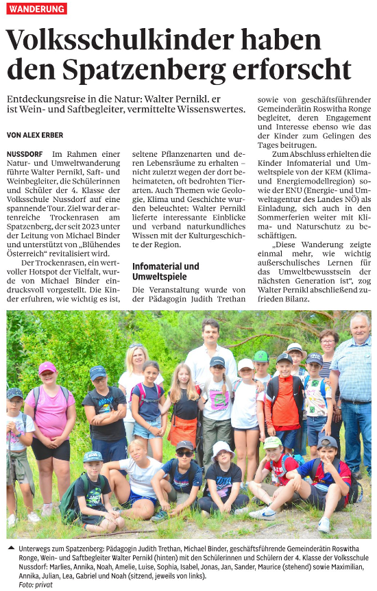 - Volksschulkinder haben den Spatzenberg erforscht (NÖN) - 08.07.
