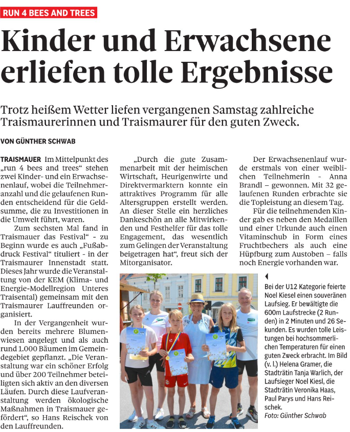 - Run4Bees: Kinder und Erwachsene erliefen tolle Ergebnisse (NÖN) - 24.06.