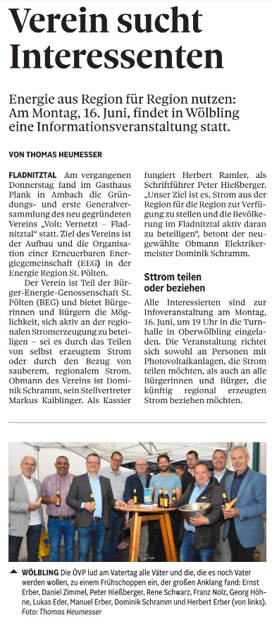 - Verein sucht Interessenten - EEG Volt:Vernetzt (NÖN) - 10.06.