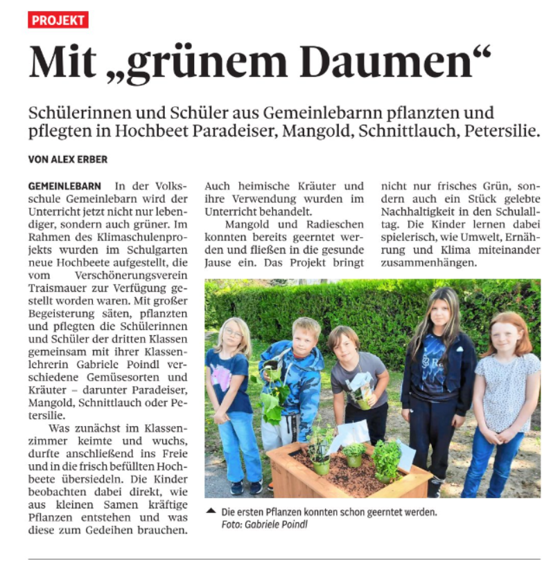 - Klimaschulenprojekt: Mit "grünem Daumen" (NÖN) - 10.06.