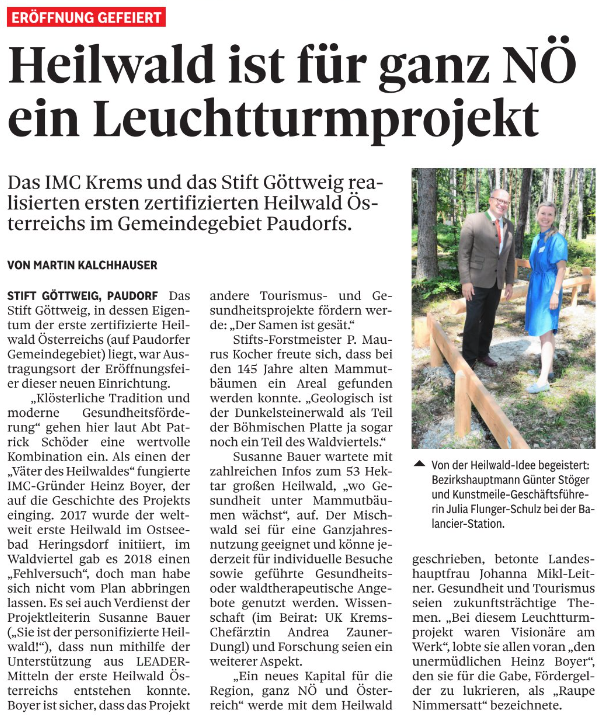 - Heilwald ist für ganz NÖ ein Leutturmprojekt (NÖN) - 24.06.