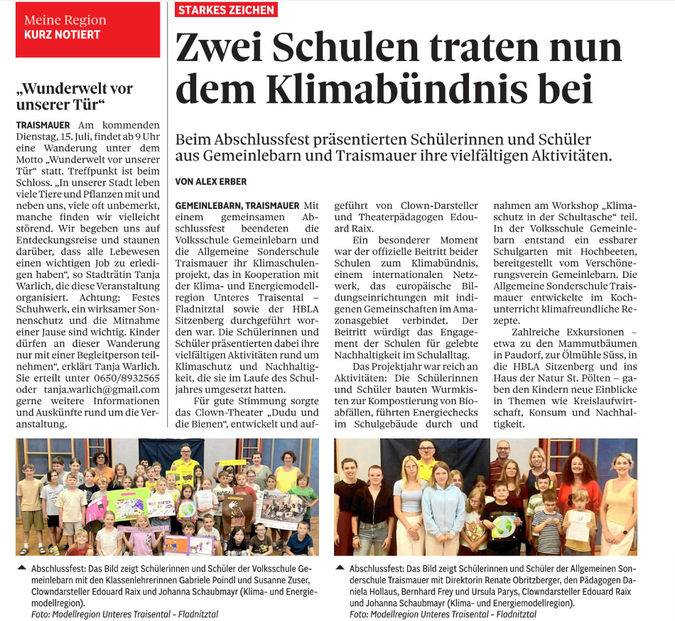 - Schulen in Traismauer treten Klimabündnis bei (Bezirksblatt) - 02.07.